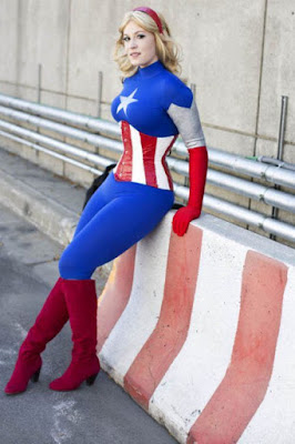 Jaycee Cosplay looks beautiful in her Captain America pinup cosplay inspired by the pinup avengers series by Sammie of Itty Bitty Sheip. She pulled it off perfectly, here's what she said about it... "When I first saw Sammie's pinup Cap I knew I had to cosplay her artwork. I decided this about a month before New York Comic Con 2013. Unfortunately, my sewing skills are very limited so my best friend, and cosplay partner, Alissa, helped me with the corset and leotard. This was probably the quickest cosplay we've ever put together and probably my favorite to date. Not only is it one of the best received costumes from my friends, family and cosplay friends, but it's also the one costume that makes me feel really sexy. Confidence booster, FTW! :)"